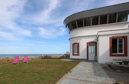 Semi-detached house at the old semaphore lookout. Living room (TV, wifi internet). Kitchenette (oven, induction hob, dishwasher, fridge, microwave, washing machine). Bedroom 1 (2 bunk beds 90x190 + 1 bed 90x190). Bedroom 2 (bed 140x190) with sea view. 2 shower rooms. 2 toilets. Upstairs, mezzanine with 2 beds 90x190 and office area. Electric heating (underfloor) at an additional cost at the current rate. Sheets and towels for hire. Cleaning service at an additional cost. Shared enclosed grounds. Terrace. Garden furniture. Barbecue. Shared parking. Other gîtes are also available in the same location (G720+G722+G725). Cleaning deposit required on site. This former Navy semaphore is built on a rocky mound between the windswept moorland and the surf of the sea. The winding access road reinforces the impression of a stay at the end of the world! The municipality has undertaken the rehabilitation of the site and transformed the buildings into lodgings: 1 lodging for 6 people, 1 lodging for 7 people and 2 studios for 2 people. The lookout is now offered as a reception room and can be reserved on request and with supplement if you rent the entire site. The view from the living room is extraordinary and you can freely enjoy the terraces and this unique site with a 360 ° panorama!