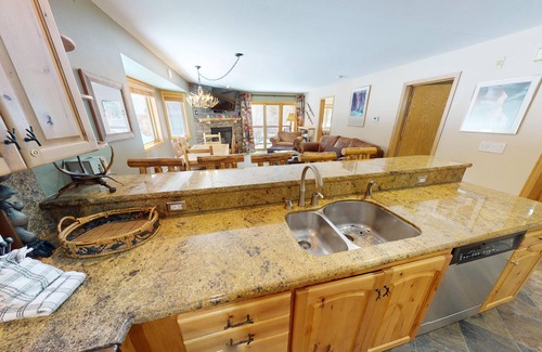 Cinnamon Ridge III D121 is a ground floor, corner unit that is full of light. Updated, beautiful and spacious 2 bedroom, 2 bath. Sleeps 6. On the stream, wetlands and rec path that connects to all of Summit County. Just a 6 minute walk on the boardwalks across the wetlands to the Mountain House base area lifts and about 8 minutes to the ski/ride school. Fully-equipped kitchen with beautiful slab granite counters and stainless appliances. Dining table seats 6. Kitchen bar seats 5. Private covered south-facing deck. Comfortable seating in living room with gas fireplace and large flatscreen. Free WiFi and cable. Enjoy the beauty of the night-skiing lights in the winter. Watch skiers and boarders on the slopes. Complex has 2 outdoor hot tubs that overlook the slopes and river. Deck has views to Keystone Mountain, the Snake River and wetlands. Watch for moose! Washer and Dryer in kitchen closet for convenience. A quiet summer retreat right on the recreation path. Near to the summer wedding venues: Arapahoe Basin's Black Mountain Lodge and Keystone's Ski Tip Lodge. Easy walk, bike, shuttle or drive to the Keystone Conference Center, Keystone Stables, River Run Gondola and Keystone Bike Park.