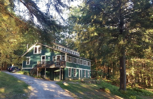 Right on Highland Lake beautiful spot, sandy beach, great house but close to town. This house was built in 1930 as a hunting lodge/camp but has been updated. The kitchen has enough space to feed an army, big trestle table, beautiful field stone fireplace is the centerpiece of the living room. fire pit outside, great, dock, nice sand, 2 kayaks and a paddleboard for your use