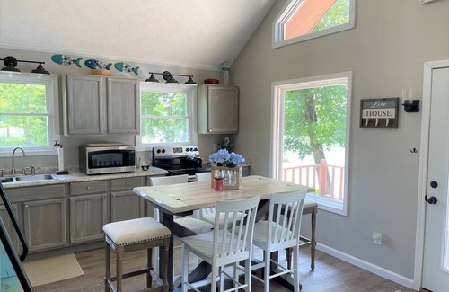 This newly remodeled cabin sits on the bank of the Tennessee River with panoramic views!
