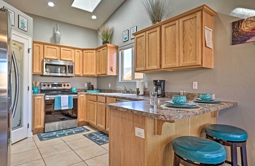 Calling all outdoor enthusiasts to come and witness for yourself the jaw-dropping, scenic canyon country in Page! This 3-bedroom, 2-bath home pairs an updated interior with an impressive outdoor space, featuring a fire pit and gas grill. Jam pack your days with adventure, whether it be visiting Horseshoe Bend or Glen Canyon Dam within 5 miles of this vacation rental. Take day trips to Grand Canyon National Park and Bryce Canyon National Park to marvel at the spectacular geological formations!