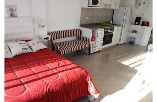 The apartment is a Boutique Studio located in the tourist and safe area of Palermo Hollywood. It is cozy, warm, modern and very bright all day. It has a queen size bed, a sofa, a smart tv, wifi, spacious closet, air conditioning hot / cold, table and chairs, full bathroom, full kitchen, private terrace with open view and solarium with pool. The neighborhood is a gastronomic area, full of restaurants, pubs, theaters, supermarkets, laundries, shopping malls and green spaces, near buses and metro.