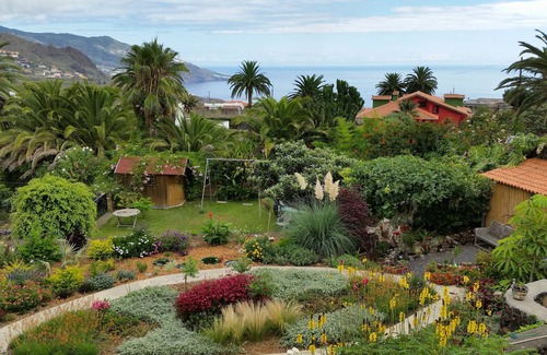 Our feel-good apartment consists of the main room with a double bed and seating area, a spacious modern bathroom with toilet, comfortable shower and glass vanity, and a modern kitchen with a large bunk bed. The apartment is connected to a large covered terrace with a cozy seating and dining area with a view of an idyllic garden with a garden pond and watercourse - rest and relaxation. The spacious garden offers plenty of freedom of movement for children: play area with a large swing and megatrampoline, a water slide at the solar-heated pool. Our finca is characterized by a fantastic view of the sea and mountains and has the variety of plants and flowers typical of the island. Our apartment is attached to our house. For guests who also like to contact, very suitable for families with children and also for seniors. We are a German family with 2 children (15 and 19 years), speaking German, Spanish and English, and we look forward to your visit.