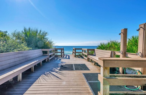 Gulf Front in Seagrove and very close to Seaside! This ground floor condo has been totally updated with new floors, new stainless kitchen appliances, new furniture, completely renovated bathrooms and 2 new flat screen TVs! Walk right out your living room door to the gulf! No elevators!! Sleeps 7. A Master King bedroom with private full bath. Three level bunk in the hallway is perfect for the kids . A queen sleeper sofa with memory foam gel mattress in the living room. There is a