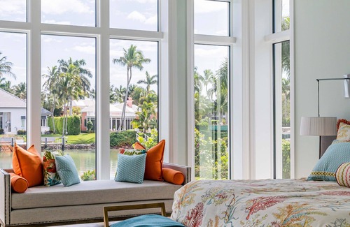 Welcome to Port Royal and this beautiful contemporary house recently built footsteps away from the beach. Whether you like relaxing in flip flops or dressing up, this sophisticated and timeless design with take your breath away. With over 6,400 feet of livable space, this home has 5 bedrooms and 7 bathrooms to accommodate everyone in your party. The primary suite is located on the first floor with panoramic views of Cutlass Cove. Enjoy walk in closet, his and her sinks, an extra large bath tub, and a walkthrough shower. On the second floor, you will will find 4 additional suites at each corner of the house with 3 king suites and 1 suite with 2 twin beds. Each suite has its own full bathroom. Upon entering the house, you will be captivated with spectacular views of the wide and spacious living room followed by views of the pool, deck, and Cutlass Cove where dolphins and manatees frequently visit. You'll love the open kitchen design with dual refrigerator and freezers on each side along with 5-gas burners. The beautiful dining room table can seat 14 guests. Open up all the sliding doors to truly experience the breeze and take advantage of feeling connected with the tropical environment as you relax in the living room. The living room has 3 large LED TV's connected with a wireless Sono's sound system. Upon entering the outside deck, you can relax in the shade as you enjoy views of the cove and grill out on the Green Egg or Evo flat top grill. The long pool is ideal for swimming laps or playing with the whole family. The spa/jacuzzi can seat 10 comfortably. Travel upstairs via the elevator or wooden stair case and you can relax on a large wrap around couch enjoying sports and movies on the large LED TV while your friends play on the 8ft billiard table, shoot darts, or play cards all while taking in the breathe taking views of a Gulf of Mexico sunset. This house has everything you need to slip away into paradise and experience Naples like never before.