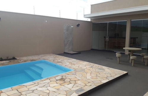 THE PARIS SEASON HOUSE WAS BUILT IN THE YEAR OF 2017 WITH ITS TERM IN OCTOBER OF THE SAME. ACCOMMODATES 12 PEOPLE INCLUDING CHILDREN, HAS 3 DORMITORIES ALL WITH SUITES, AIR CONDITIONING, A BED BOX AND A BELICHE, EACH DORMITORY ACCOMODATES FOUR PEOPLE. A LARGE LIVING ROOM WITH WALL FAN, TELEVISION, INTERNET WI-FI, A GOURMET AREA WITH TABLE, STOVE, BARBECUE, FRIDGE, FREEZER AND MICROWAVE. LEISURE AREA WITH SWIMMING POOL, SOCIAL BATHROOM AND LAUNDRY. GARAGE FOR FIVE VEHICLES OR VAN. FOR YOUR SAFETY, IT HAS ELECTRONIC GATE AND ELECTRICAL FENCE, WE ACCEPT PETS, COMFORTABLE PLACE AND VERY TRANQUILIDADE.