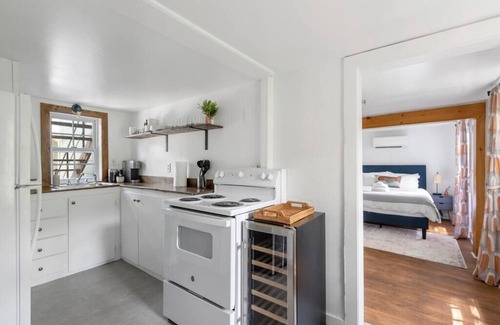 We invite you to make yourself at home! Our property consists of a 1940s craftsmen bungalow and two one-bedroom apartments adjoined by an outdoor courtyard. The open living area of the historic main house has everything your group will need to gather, cook, and dine together, or you could choose to use the gas grill and dine al fresco in the courtyard. Guests of all ages and their furry friends will enjoy the recreational activities available in the fully fenced outdoor space - the putting green, bocce court, cornhole, frisbee golf, and the gas fire pit. For those who prefer to be inside, the game room in the downstairs apartment won’t disappoint.