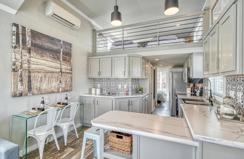Park Model Cabin - Twin Loft - One queen bed in the private bedroom, with two twin beds in the open loft. | Cabin in Salida