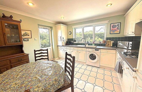 Spacious kitchen-diner with full-sized oven, hob, microwave, fridge-freezer, kettle, toaster, and all cookware essentials. Dining table for 4–6.