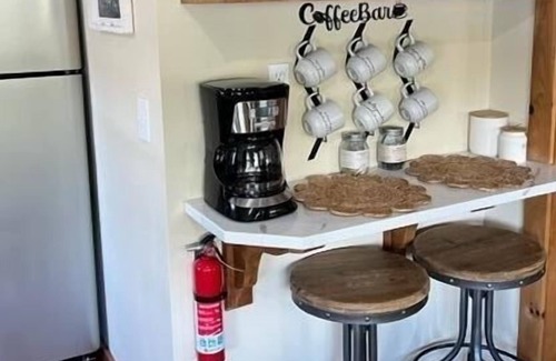 The lower level is the perfect hangout spot, complete with a built-in bar with bar stools, tv, a couch to relax, and multiple games such as connect four, darts, and hook and ring game. There is also a laundry area. Off the hangout/ second living area, you will find a bedroom boasting two queen-size beds and a half bathroom.