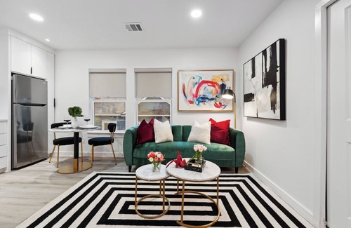 Welcome to your Art Deco escape in Dallas' vibrant Bishop Arts District! Relax in a stylish 1BR retreat packed with comfort and charm.