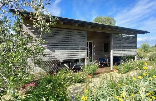 The eco-house was built in 2019 with 100% sustainable materials. It is independent from the main farmhouse and enjoys a large private patio with outdoor sitting/ dining area.