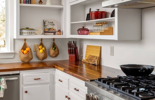 Airy, light-filled kitchen is stocked for your cooking genius. Fruits trees & 3 friendly, outdoor cats surround the home. Sleeps 6, space for hosting more, with permission.