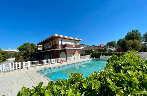 Lovely two-storey terraced house for up to eight guests, located in a residence with a shared outdoor pool. The property features a private garden and patio as an entry, a living/dining room with a double sofa bed, a separate equipped kitchen with direct access to the garden, a half bathroom with a washing machine, two double bedrooms, a bedroom with a bunk bed, a complete bathroom with a shower box, and a huge terrace accessible from two of the bedrooms. One covered parking space is included. Beach distance: 490mt.*No pets allowed. A/C is available at an additional cost (check below).°Swimming pools are open seasonally (mid June/early September): exact dates may vary due to weather or maintenance