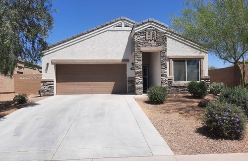 Experience the Phoenix area just 45 minutes west from the airport. When you stay at this gorgeous southwest furnished home in Buckeye AZ. A 3-bedroom, 2-bath vacation rental. Sleeps 4 adults comfortably and 2 small children. Located just outside the city, in a quiet desert development, called Tartesso. With a sports park. Featuring: tennis, pickleball, basketball, volleyball, splash pads, and much more. All within walking distance. This house has a desert view out back. A neighboring house on one side only. This home offers the ideal location for couples and families. Make a splash in the private pool on those beautiful hot Arizona days. Relax in the hot tub, and enjoy the patio with all the outdoor amenities. Whether you are into walking the quiet and very peaceful neighborhood, or engaging in the activities at park. At night lookup at the night sky. We are sure you will enjoy this home. This may be a great fit for you. Be sure to keep your ears open for the sounds of the west. You may even hear the coyotes at night. A pleasant, southwest experience. Come and experience it for yourself. Consider taking an hour drive north on Sun Valley Parkway to spend a day at Mount Pleasant lake. There, most likely, you could view the wild burros, as we have. We also saw a coyote and watched as it ran around the water and can up to the road and crossed by us.