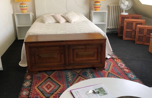 La Barollière, located on the edge of a century-old forest inhabited by deer, squirrels and rabbits, nestles in a two-hectare park with swimming pool. This house offers upstairs a master suite with 2 communicating bedrooms: 1 bedroom with 140 cm bed, the lavender bedroom with 1 140 cm bed and 1 90 cm bed and 1 bedroom with 1 160 cm bed and the large terra cotta living room with sofa, table , fridge, microwave. Breakfast is served in the dining room where the earthenware of Malicorne is highlighted by Chantal your host. If the A 11 motorway located 500 m from La Barollière provides convenient access, it can be a bit noisy outside depending on the winds. Malicorne earthenware space 5 km, Parcé sur Sarthe small city of character. Zoo de la Fleche 15 km, river port and baroque festival of Sable 15 km.