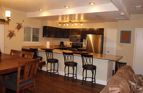 Nestled in a serene location, this three-story condominium offers a luxurious retreat with breathtaking views. Each of the three bedrooms is designed for comfort, featuring a king, full, and twin bunk beds, complemented by private bathrooms and flat-screen TVs for a personalized leisure experience. The living area, boasting new flooring and granite countertops, is a testament to modern elegance, while the remodeled kitchen is equipped with top-of-the-line appliances, ensuring a seamless culinary adventure. The complex itself is an oasis of relaxation, with a stunning swimming pool surrounded by BBQ grills, perfect for social gatherings or tranquil solitude. Additional amenities like complimentary Wi-Fi, a washer/dryer set, and a fishing light by the boat slips cater to both convenience and entertainment needs. This condo is not just a place to stay; it's a lifestyle upgrade.