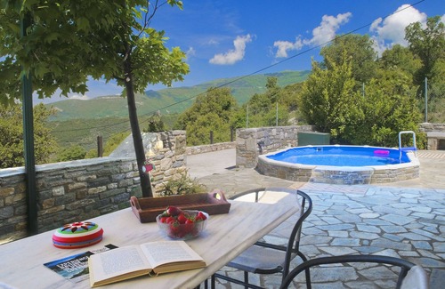 Peliongoddess DIANA Stone guesthouse with private pool heated from April to October up to 28 degrees Celsious. Situated in the heart of southwestern Pelion in the village of Agios Georgios Nilias, with great view to the Pagasitikos gulf and the surounding mountain is located just 20 km from the city of Volos.See also our other apartments