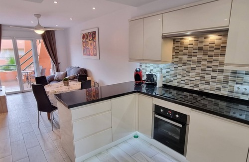 The apartment is located in the urbanization Paraíso Playa , with green areas and also a community pool for adults and children. Elevator in the building. Several bars and restaurants at about 150m and a large supermarket at about 1600m.