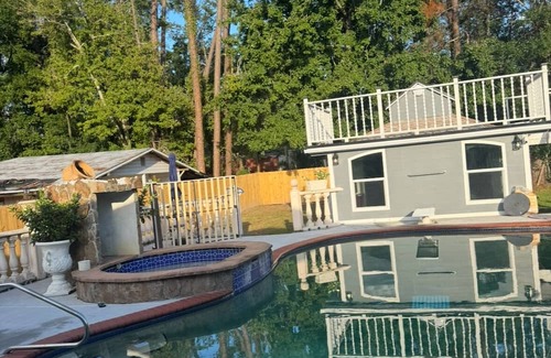 Escape to this amazing house in picturesque Jacksonville. This tranquil retreat features 4 bedrooms including a king bed, queen bed, and child bed. With 4 bathrooms, including a relaxing bathtub, guests can unwind in style. Beautifull patio with fruits trees, pool, second kitchen in the pool area, enought space to do barbecue. Whether you're enjoying the ironed linens or the refreshing AC, this beautiful property offers a cozy stay for all. We're happy to assist with any questions while you stay at our house.