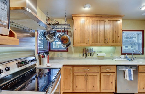 Discover everything that Idaho’s charming capital has to offer when you book this 3-bedroom, 1.5-bathroom home! This cozy vacation rental features an equipped custom kitchen to prepare meals for the family, a spacious cedar living room to stream on the Smart TV, and a private deck to lounge outside in the sun. Wanting to explore more? Take a drive to visit the animals at Zoo Boise, learn about the ocean at the Aquarium of Boise, or make a splash at Roaring Springs Water Park!