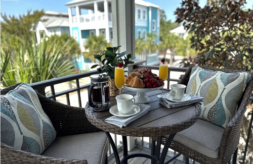 - Westward-facing Sunset Balcony overlooking Seacrest Beach rooftops, with Adirondack chairs and pub table, perfect for dining at sunset!