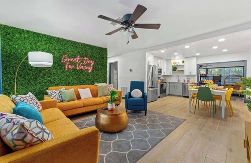 This 3 bedroom home has 2 queen bedrooms & 1 King bedroom w/ 300mb/s Wi-Fi & a desk just in case you need to work in between time at the springs! The sunroom also has a queen size sofa bed for extra guests & a pack n play!