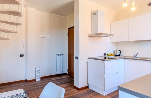 2-room apartment on 2 levels on 3rd floor. Comfortable and modern furnishings: open living/dining room with dining table and TV (flat screen). Open kitchen (4 induction hot plates, kettle, microwave, electric coffee machine, Capsules for coffee machine (Bialetti)). Shower/WC. Upper floor: (spiral staircase) open living/sleeping room with 1 double sofabed and 1 double bed. Shower/bidet/WC. Gas heating. Heating available only from 15.10. to 30.04. Natural stone floors. Partial view of the lake and the mountains. Facilities: hair dryer. Internet (WiFi, free). Parking (1 car). Please note: non-smokers only. Smoke alarm, fire extinguisher. IT013248B48VBODNUG