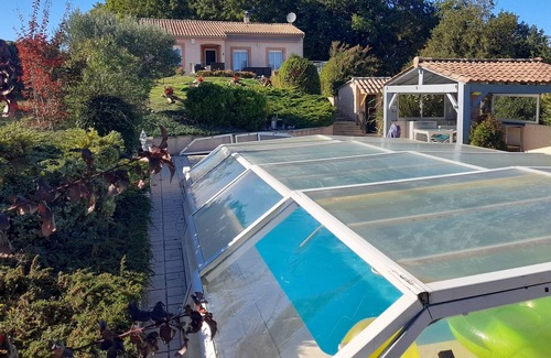 Newly installed pool shelter, easily usable to let the pool open or close to keep an ideal temperature.