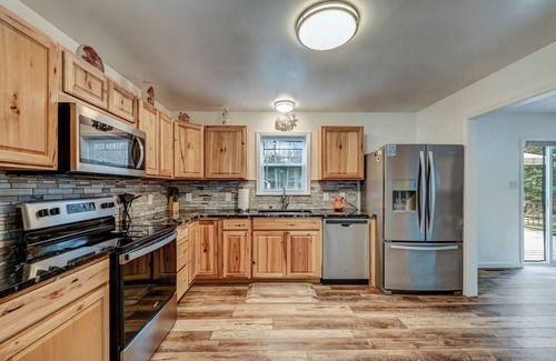 Experience Albrightsville like a local in this 3-bedroom house. The back deck is well equiped for your entertainment needs. Including two outdoor tables, fire pit, hot tub, barbeque grill and porch swing. With 2 queen beds and 1 bunk bed, this fantastic property offers a cozy retreat for your stay. Enjoy the convenience of amenities like WiFi, on site laundry, and AC. Plus, there's an additional living room space with a sofa bed for extra relaxation. It's easy to see why you'll be able to unwind.