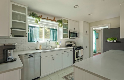 Cooking for a crowd? You’re covered. The fully stocked kitchen has everything you need to whip up group meals, whether it’s pancakes in the morning or BBQ feasts at night. Two dining rooms give you options—one perfect for family-style meals, the other with a record player and a collection of vinyls so you can set the vibe while you eat or hang out. Outdoors, the kitchen, grill, and firepit seating make it just as easy to take the experience outside.