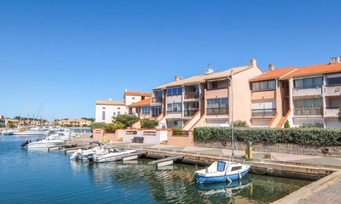 Residence "Port au Prince", 2 storeys. In the district of Les Capellans, 1.5 km from the sea, 1.5 km from the beach, direct access to the lagoon. Shop, grocery 500 m, supermarket 1.7 km, restaurant 500 m, bus stop 400 m, railway station "Elne" 6.7 km, sandy beach "Plage Sud" 1.5 km. Sports harbour 2 km, golf course (27 hole) 5.4 km, sailing school 2 km, minigolf 4 km, riding stable 2 km, sports centre 650 m. Nearby attractions: Aqualand 1.7 km.