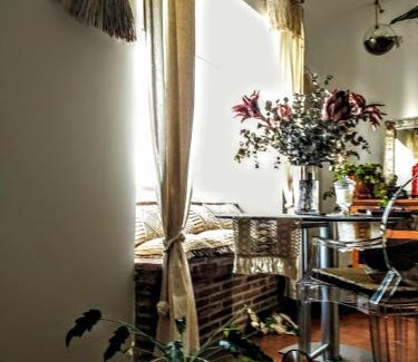 BathroomToilet, Bathtub or shower, Shared bathroom, Hairdryer, Towels, Shampoo, Conditioner, Toilet paper, Body soap, Shower, Shared toilet, Bathtub, Guest bathroom, Free toiletriesGeneralMosquito net, Trash cans, Heating, Tile/Marble floor, Soundproof, Suit pressLiving AreaDesk, FireplaceViewGarden view, View, Mountain viewBedroomWardrobe or closet, LinensAccessibilityUpper floors accessible by stairs onlyRoom AmenitiesClothes rack, Hypoallergenic pillow, Socket near the bed, Adapter |