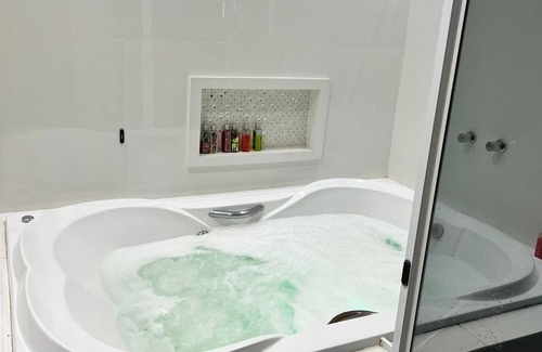 While you're here, you can enjoy all the comforts of home and more, including a jetted bathtub and WiFi, as well as air conditioning and a dryer. Other amenities include towels, an ironing board, soap, and toilet paper.