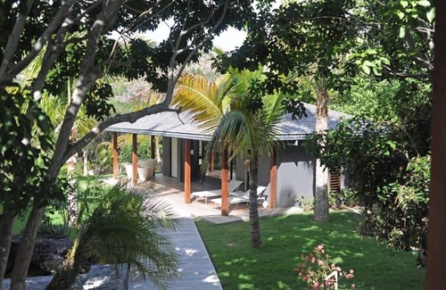 Two acres of tropical garden with bougainvilleas, coconut trees and countless smaller trees and flower-bearing shrubs native to the island.