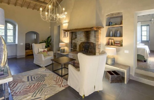 Located on the top of a beautiful Umbrian hill, from which you can enjoy an exclusive view of Lake Trasimeno, this beautiful Villa is ideal for a holiday of relaxation and privacy. For those who love tranquility the outdoor pool is reserved, as well as a Finnish sauna, an emotional shower is also located on the ground floor of the annex. Luxurious villa "Prima Luce", 290 m a.s.l detached, renovated in 2017, surrounded by trees and fields. Property composed of main house and outbuilding 2 km from the centre of Magione, in a secluded, quiet, sunny position on top of a hill, 1.6 km from the lake. Private: property 5 ha, beautiful garden 600 m2, swimming pool (9 x 5 m, depth 130 cm, seasonal availability: 29.Apr. - 30.Sep.). Outdoor shower, patio, pergola, garden furniture, barbecue, pool maintenance by the owner/gardener. In the house: WiFi, sauna, burglar alarm system. Linen change weekly. Towel change weekly. Room cleaning weekly (included). House maid on request (extra). Cook on request (extra). Breakfast on request (extra). Motor access (800 m via unmade road). Parking at the house. Supermarket 4 km, restaurant 2 km, bar 2 km, ferry "Isola Polvese" 7 km, thermal baths "Chianciano Terme" 54 km. Golf course (9 hole) 20 km. Nearby attractions: Passignano Sul Trasimeno 8 m, San Feliciano 7 km, Perugia 25 m, Cortona 30 km, Assisi 46 km, Pienza 75 m. Please note: car recommended. The house has CCTV cameras.