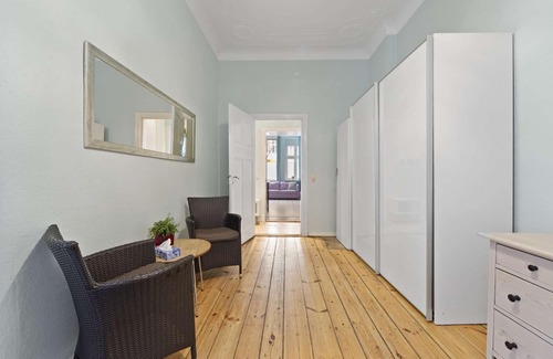 The apartment is perfect for families and larger groups who want a quiet yet central place in the heart of Berlin. It is located 200 meters away from the subway stop Wollankstr. It is located in a quintessential Berlin neighborhood with its old town charm. Everything needed for a comfortable stay from bakeries to restaurants and super markets is just a short walk away. The popular district of Prenzlauer Berg is only two subway stops away.