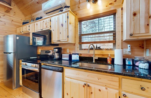 This cozy cabin features a range of amenities to ensure a comfortable stay, including a king bed, queen bed, loft area, and a sofa bed for additional guests. With entertainment options like a DVD player, Netflix streaming, and TV, you can unwind after a day of exploring the great outdoors. The fully equipped kitchen with modern appliances, including a dishwasher and coffee maker, makes meal preparation a breeze.