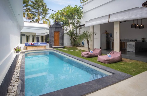 Located in a quiet area of Seminyak this luxurious 2 storey private villa has 3 ensuite bedrooms with double beds and balcony. Open kitchen with all amenities provided. The dinning room and living room with Flat Screen TV opens up to the private garden and pool. Located just 800m Seminyak centre either walk or take a bike to enjoy the restaurants, bars and shopping on offer. With your host Wita all your needs will be taken care of.