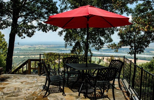 This extraordinary home with a panoramic view from Petit Jean Mountain will take your breath away! This north brow home with stunning views of the Arkansas River and valleys below can be yours for a week or weekend. It's a one-of-a kind home featuring vaulted ceilings and 2 separate living areas with the Sun Porch being temperature controlled, feels like being outside from the comfort of home. Enjoy relaxing scenes of the sunrise and wildlife from your 1000 foot view no matter the season or weather. Located on 1 1/2 acres and only minutes from Arkansas's premier Petit Jean State Park, the Museum of Automobiles, the Winthrop Rockefeller Institute, waterfalls and an airport. Relax in the Jacuzzi bath for two while gazing at the spectacular view from the master bath.