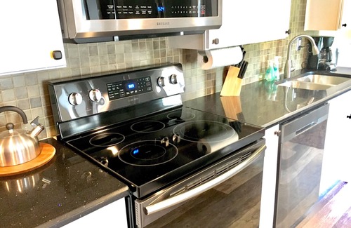 This 1100 sqft. apartment includes a double suite with two semi-private bedrooms separated by a walkthrough. It is located on the first floor of our house, while we live on the second floor. There is also a fully stocked kitchen with as many conveniences of home as we could think of.