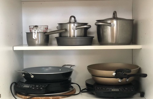 -fully equipped kitchenette (fridge, microwave/convection oven, high end portable stove tops etc.)