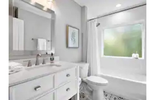 As a guest, you will have your own parking space as well as your own entrance. The space is newly renovated with a modern touch. There are two smart ROKU TVs. One is in the living room the other in the bedroom. The bathroom has a cast iron tub that is perfect for relaxing. There is also a washer and dryer that are available for use as well.