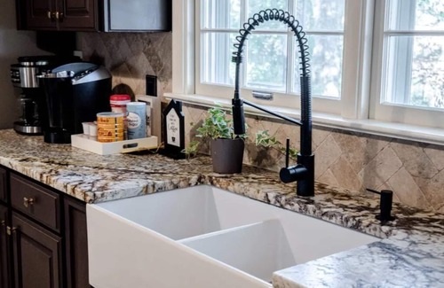 Open concept & fully equipped with cooking basics, pots, pans, utensils, spices