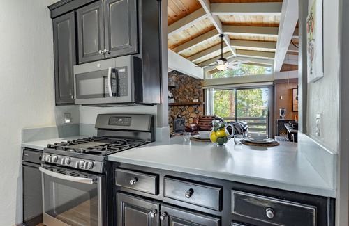 Pack your swimsuit or ski boots and head off to your California Mountain hideaway. Perfect for a family, this Tahoe City home offers vaulted ceilings, rustic decor, wood paneling, and a bright open-concept layout!