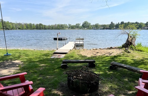 For the perfect getaway, our lakeside private home is just what you need. Beautifully decorated with many antiques, comfortable furniture and beds, books to read or borrow, games, wifi and 2 televisions Main tv is a Roku smart tv) with DVD player because sometime the weather doesn't cooperate. This is the perfect atmosphere to make your stay delightful. Set among tall pines, with a wonderful view over looking beautiful spring fed sand bottom Bughs Lake a cool breeze seems to always be blowing. Enjoy Bughs Lake, a no wake lake, with the row boats, paddle boat, Stand up Paddle boards or the kayaks, swim to the 'swim raft' or simply play in the sand. Oh yeah you can also catch pan fish and bass right off of the pier.