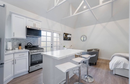 Nestled in the quiet neighborhood of Carthay, our guest house studio offers a tranquil retreat amidst the bustling city. Our charming space is perfect for solo adventurers or couples looking for a convenient and comfortable stay. Its come with a full kitchen including dishwasher as well as washer and drier in the unit.
