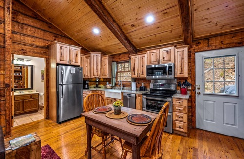 Welcome to our private mountain cabin close to everything the Smoky Mountains has to offer. Our adorable cabin is situated at a culdesac, amidst old growth forest, moments away from the entrance to the Great Smoky Mountains National Park. Enjoy a top-tier kitchen & appliances, granite counters, and huge tongue & groove ceilings with recessed lighting and so much more! Seasonal pool and year-round 24-hour fitness center access are included with your stay. The pull out bed features a top-tier after-market mattress for extra comfort for your +1's. We are located just 9 minutes from the entrance to the National Park.