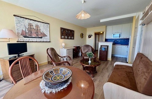 This pleasant studio apartment of almost 35m² for 3 persons is located on the second floor, door 94 of the residence “Les 3 Iles” beside the thalassotherapy center and only 20 meters from the first beach.