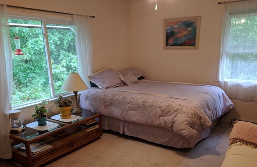 Country house on 5 acres - with beautiful 2 acre back yard lawn with creek view and shade trees very quiet and peaceful retreat - no traffic noise just nature. I am on 5 acres and and quiet country road for easy walks and cycling.